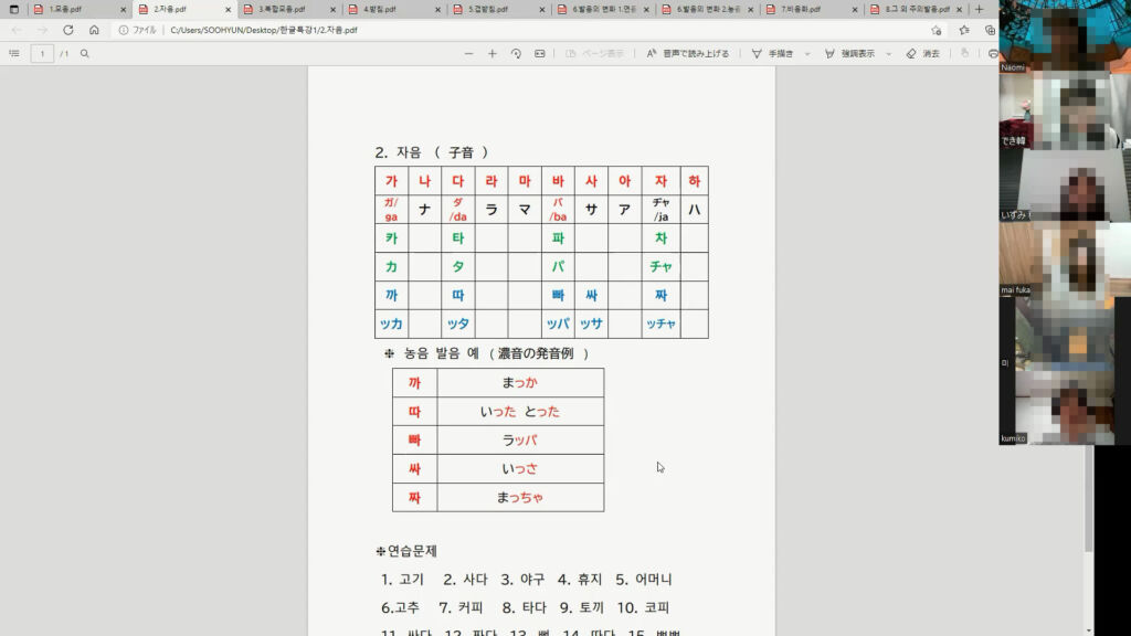 • 対象:ハングルがあまり読めない、やっと読める程度の方、土台からしっかり学んでいきたい方。7人以内の少人数制