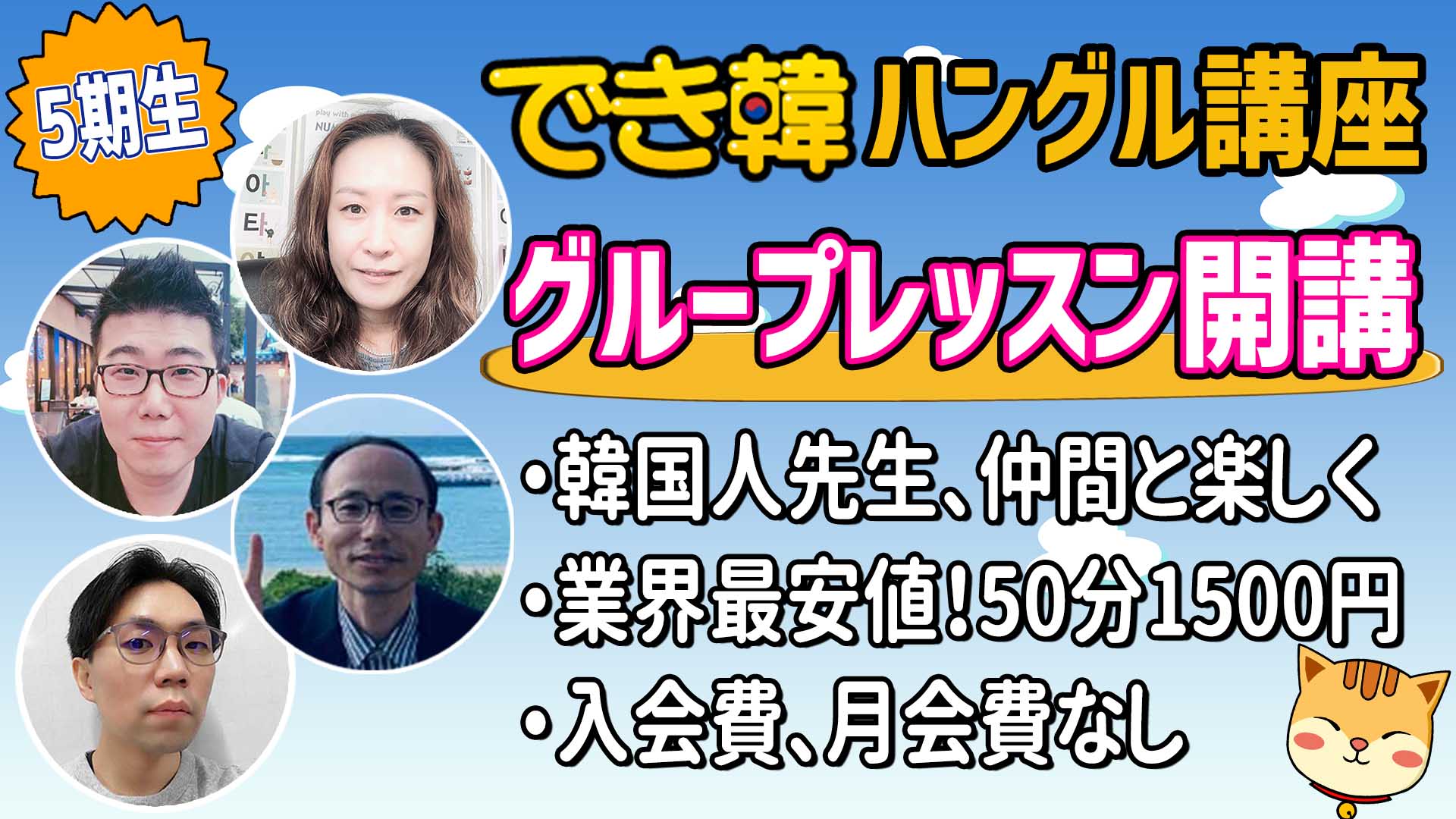 ・毎回満員を達成しているでき韓グループレッスンが2023年初となる5期生を募集します。