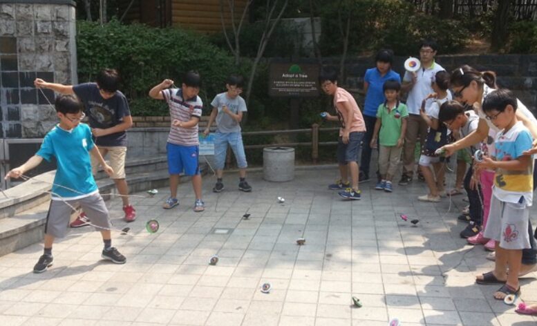 「コマ回し(팽이 돌리기)」は、世界中で古くから親しまれている伝統的な遊びです。韓国では高麗時代(918年~1392年)から遊ばれていたとされています。