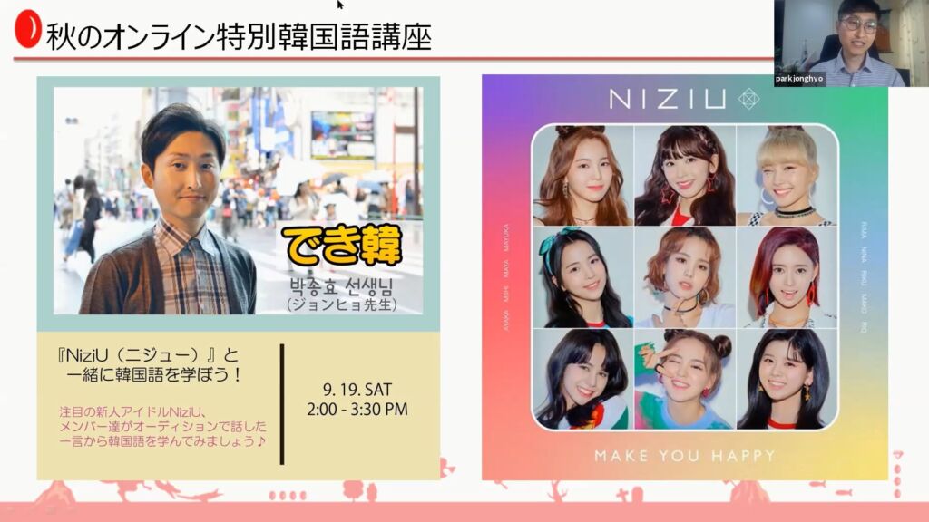 オンラインセミナー「秋の韓国語フェスティバル」が無事に終わりました。