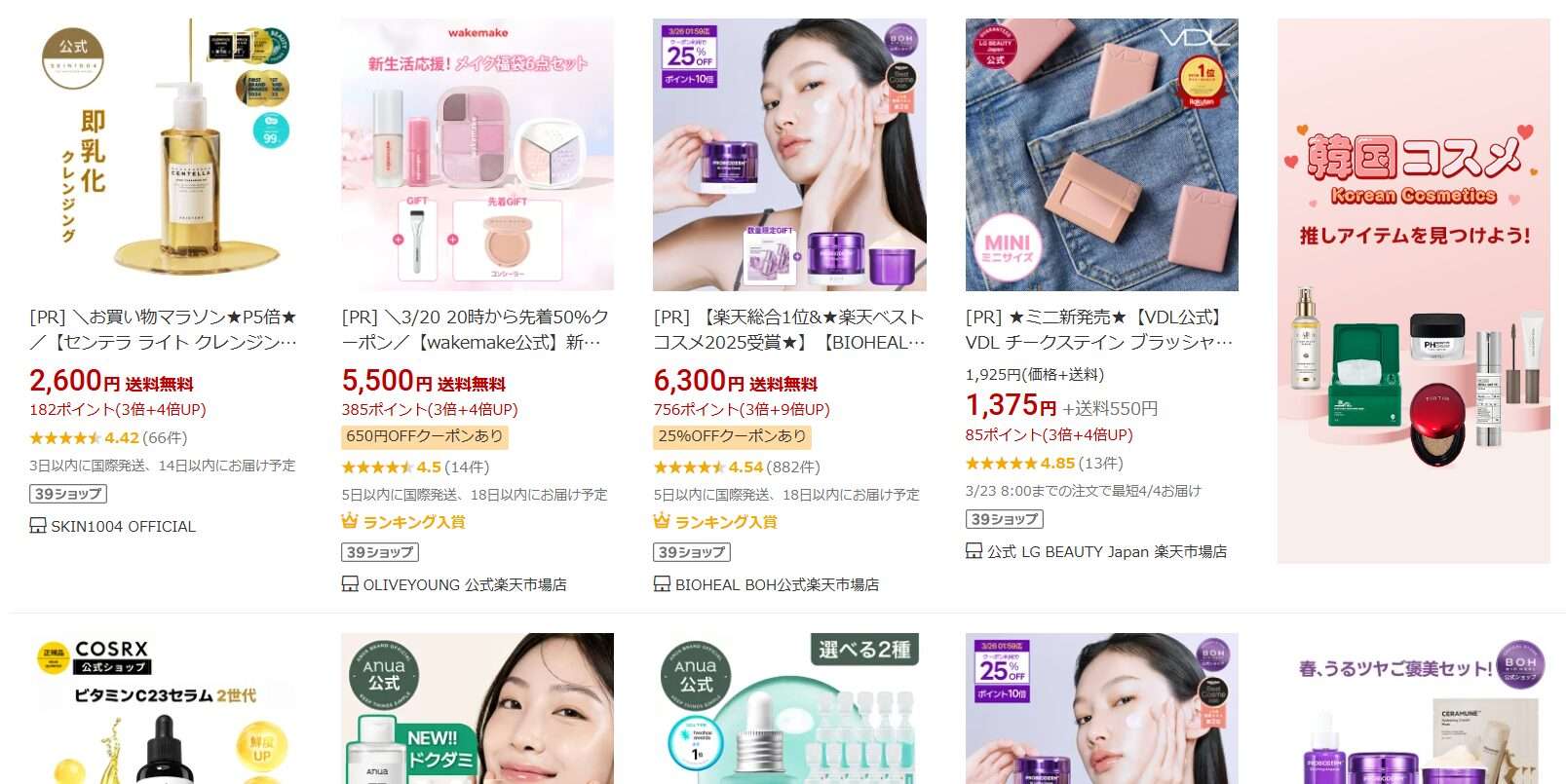 楽天市場で韓国コスメをチェック