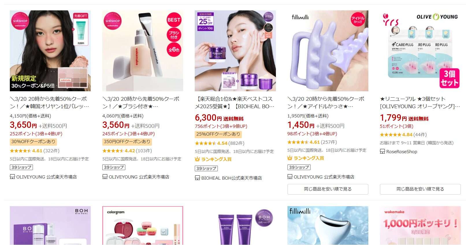 • オリーブヤング(楽天):韓国のドラッグストア最大手。豊富な品揃え