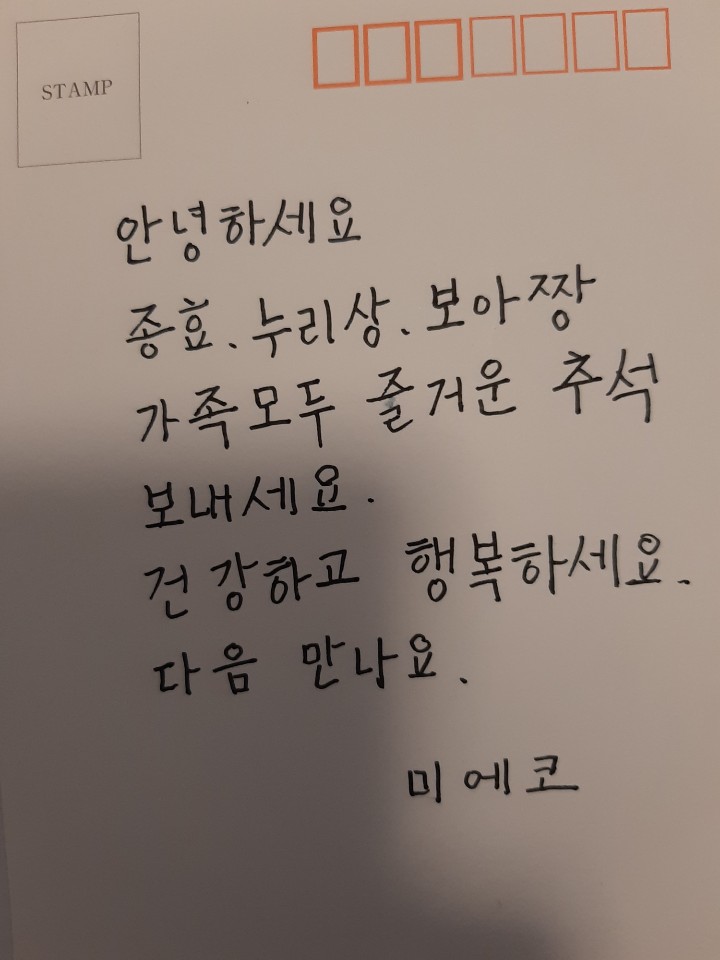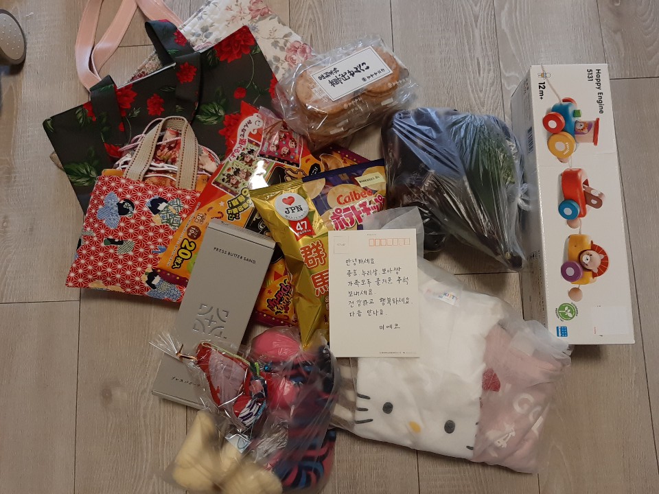 韓国のチュソク(韓国の名節)を迎え、ささやかなものを送ったら箱いっぱい物が届きました。