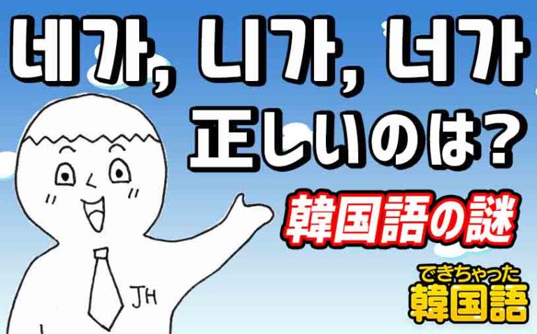질문(質問) 네가(君が)が歌の中で니가でもなく、너가に聞こえるのですが、聴き間違えなのか、正しく教えていただいきたいです! 답변(答え) sinbaさん、アンニョンハセヨ!パクです。日本語の「あなたが・君が」が韓国語で … 続きを読む 네가, 니가, 너가(あなたが・君が)正しいのは?ニュアンスの違いと使い方を例文で解説
