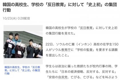 そして、2019年は韓国の高校生たちが学校と先生の反日教育に反発するデモを行ったこともあります。これは日韓でかなり話題になりました。
